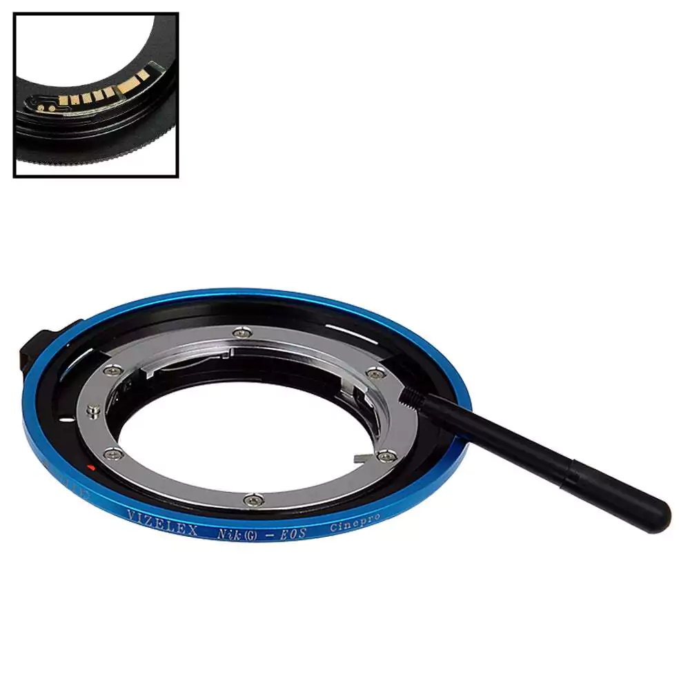 Fotodiox Pro Cine-Adapter für Objektivanschluss Nikon Nikkor F-Anschluss G-Typ D/SLR-Objektiv an Canon EOS (EF, EF-S) Anschluss SLR-Kameragehäuse – mit Fokusbestätigungschip der Generation v10 und integriertem Blendensteuergriff