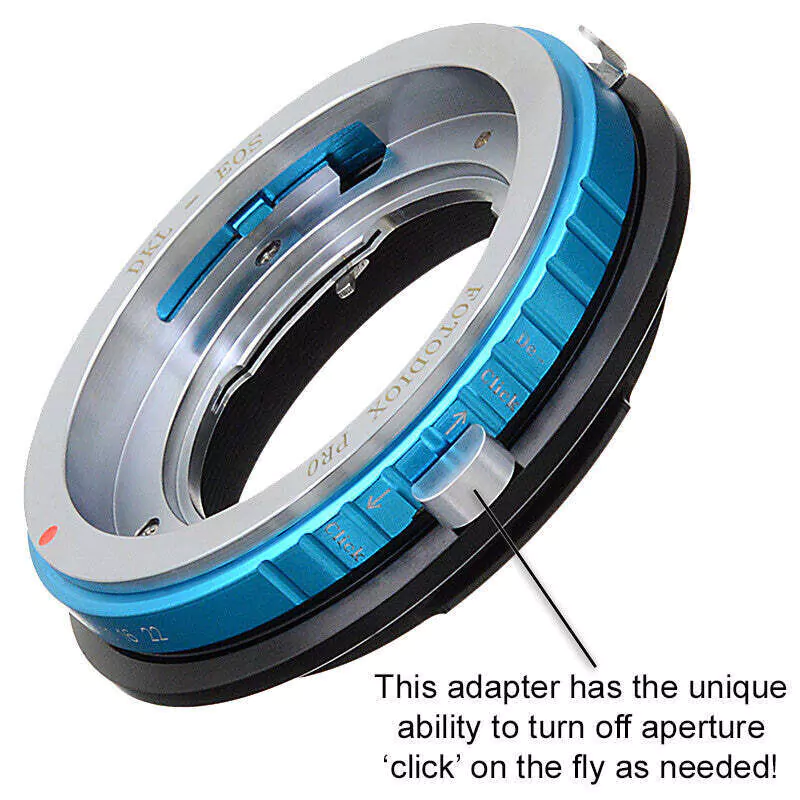 Fotodiox Pro Objektivadapter Deckel-Bayonett (DKL) SLR-Objektiv an Canon EOS (EF-S) SLR-Kameragehäuse mit wählbarer Blendensteuerung (klickbar/nicht klickbar)