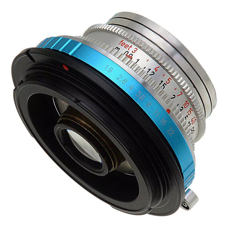 - • Bei einigen Objektiven, wie beispielsweise dem Schneider-Kreuznach Retina Xenon 50 mm f/1.9 und dem Voigtländer 50 mm f/2 Septon, kann die maximale Blendenöffnung aufgrund der durch den Adapter bedingten Blendenbegrenzung nicht erreicht werden. Weitere Informationen finden Sie in der Fotodiox Solutions Knowledgebase hier .