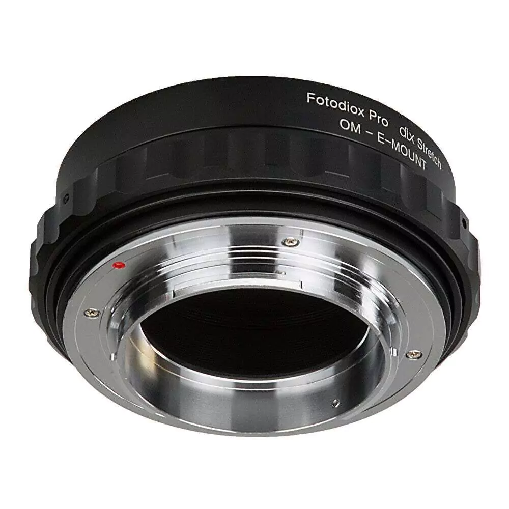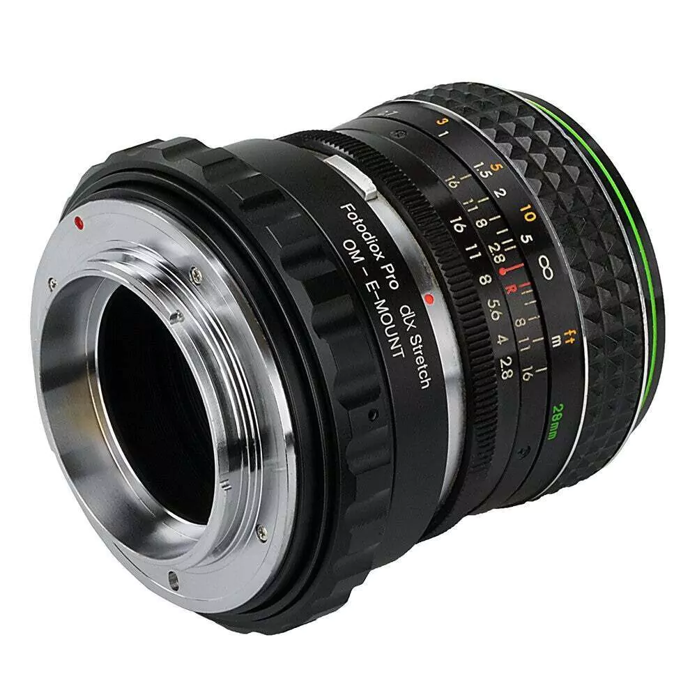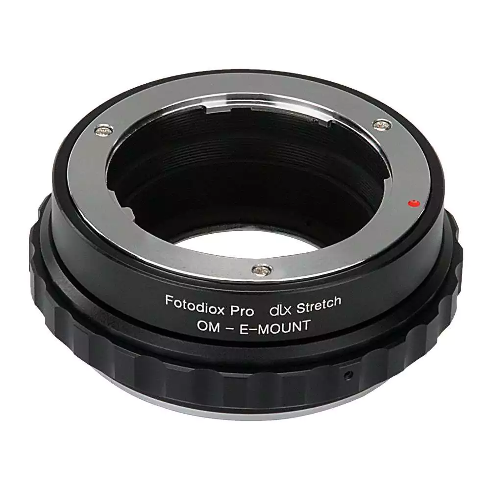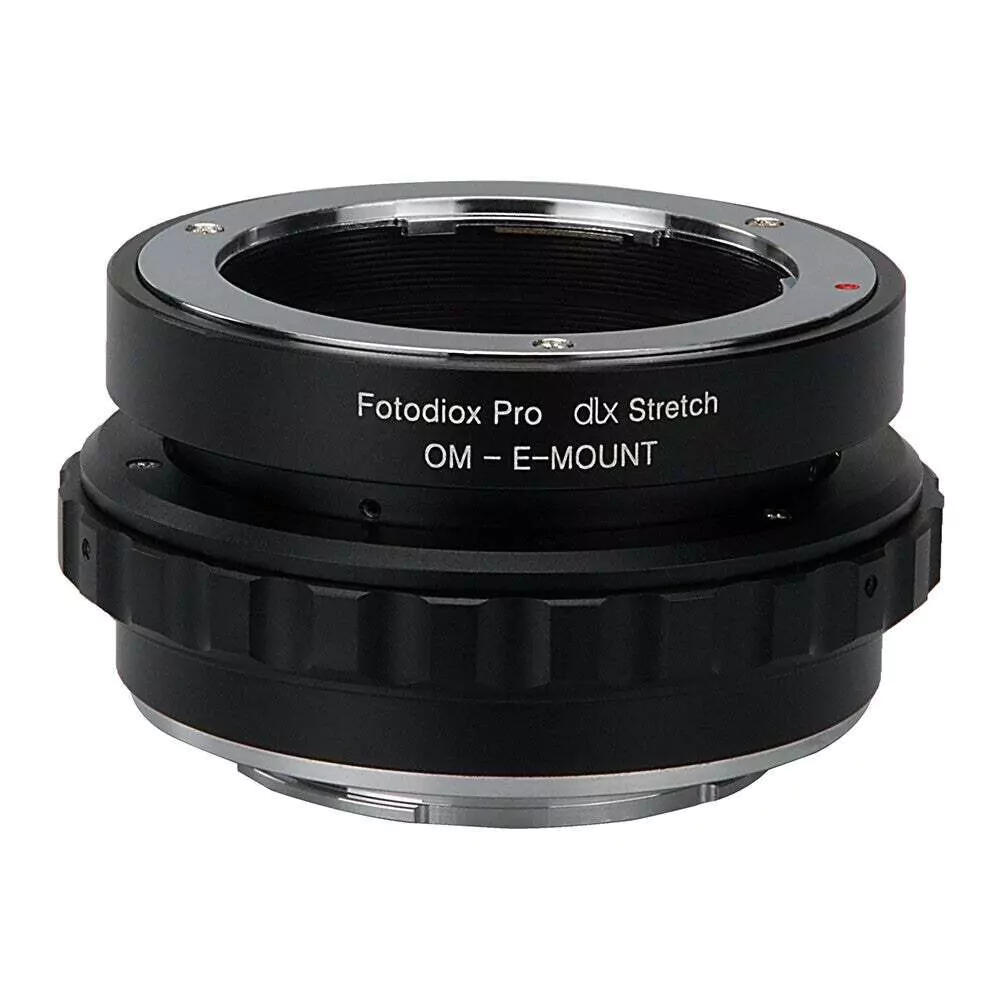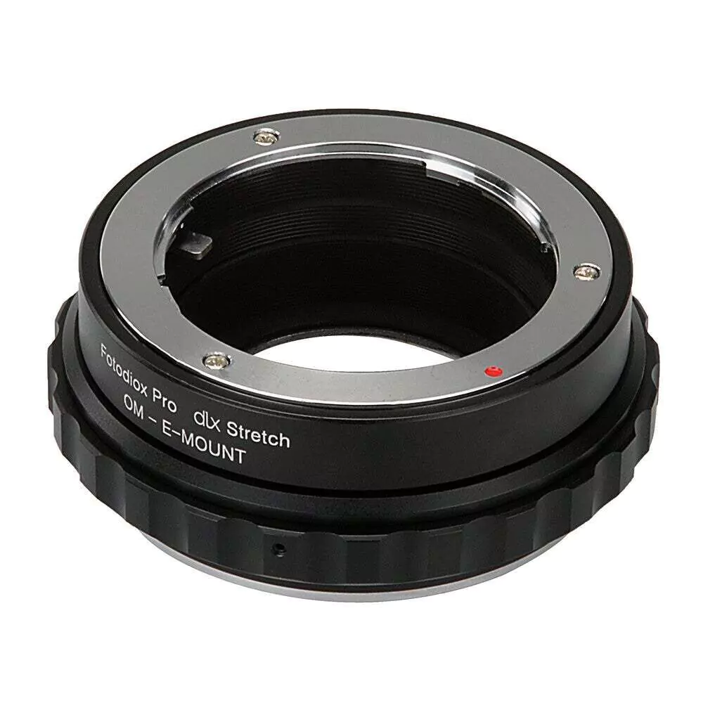 Fotodiox DLX Stretch Lens Mount Adapter – Olympus Zuiko (OM) 35 mm SLR-Objektiv an spiegelloses Sony Alpha E-Mount-Kameragehäuse mit Makrofokussierungs-Helikoid und magnetischen Drop-In-Filtern