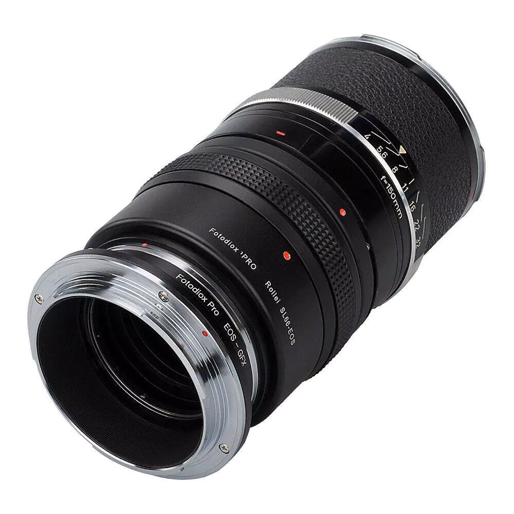 • Doppeladapter zur Befestigung von Rolleiflex SL66-Serie und Canon EOS (EF / EF-S) D/SLR-Objektiven an Fujifilm G-Mount GFX spiegellosen Digitalkameras