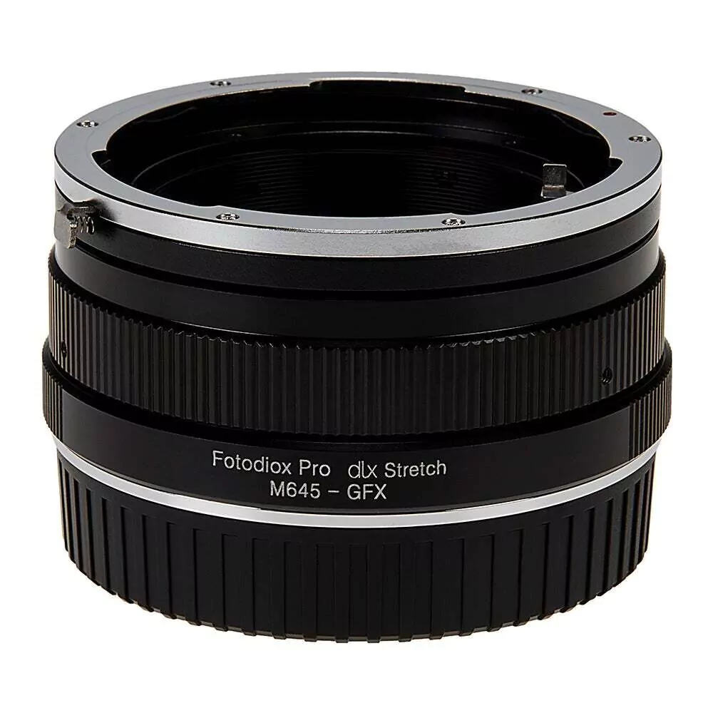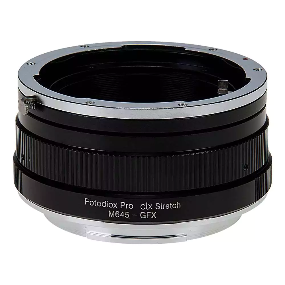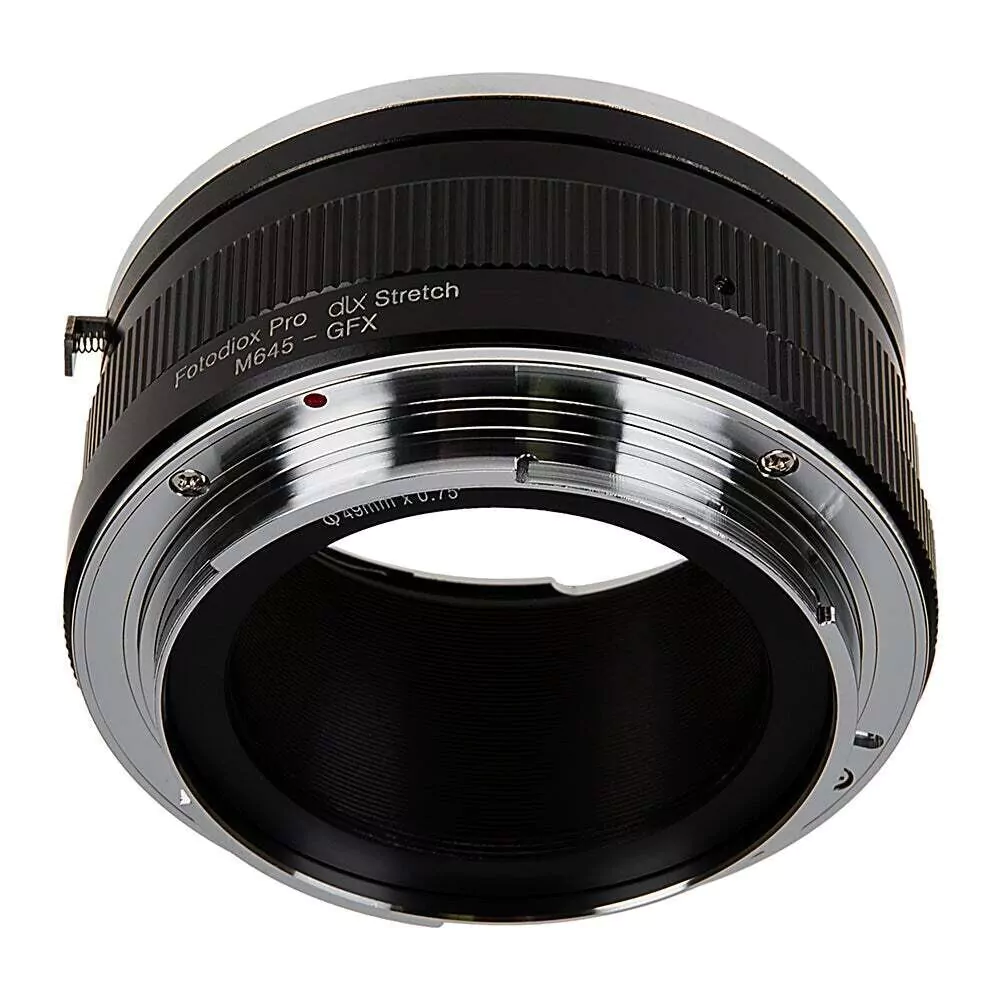 Fotodiox DLX Stretch-Objektivadapter Mamiya 645 (M645)-Mount an das Gehäuse einer Digitalkamera mit Fujifilm G-Mount, mit Makro-Fokus-Helicoid und 49-mm-Filtergewinde