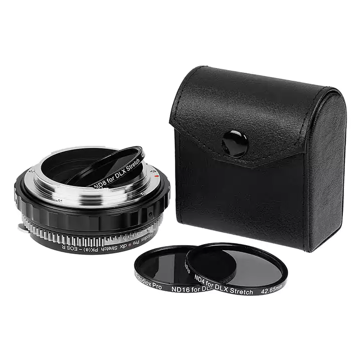 Fotodiox DLX Stretch-Objektivadapter mit Pentax K Autofokus (PK AF) Linse für spiegellose Kameras mit Canon RF-Mount mit Makro-Fokus-Helicoid und magnetischen Drop-In-Filtern