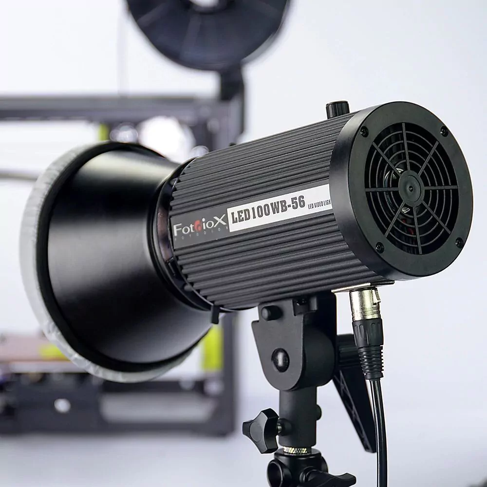 Videoaufnahme mit 120 FPS bei 1/1000stel VerschlusszeitDie LED-Lampen selbst haben einen hohen Farbwiedergabeindex (CRI >95); sie liefern klares, farblich korrektes Licht, das die Farben des Motivs getreu wiedergibt. Der eingebaute Glasdiffusor der LED erzeugt ein weiches, gleichmäßiges Licht. Die zuverlässigen LED-Leuchten müssen nicht ausgetauscht werden, was die Fotodiox LED-100 zuverlässiger macht als Stroboskope oder andere konstante Lichtquellen.Die LED-100WB Leuchte ist mit dem beliebten Balcar (Paul C, Buff, Alien Bees, Einstein) Bajonettanschluss für Lichtmodifikatoren und anderes Zubehör wie Softboxen, Beauty Dishes, Barndoors, Snoots und mehr ausgestattet. Die Vielseitigkeit und die angenehme Bedienung der LED-100 machen diese Leuchte zu einer leistungsstarken und wirtschaftlichen Lösung sowohl für Hobbyfotografen als auch für ernsthafte Fotografen und Videofilmer.