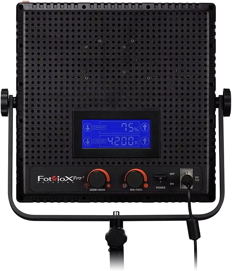 Merkmale: 10-100% Helligkeitsregelung Dimmer, Ein/Aus-Hauptschalter 3200-5600k Farbtemperatur, Farbbewertungsindex > 92 Kipp-/Schwenkbarer Montagebügel für Standard 5/8″-Lichtständerbolzen 4x Abdeckklappen helfen bei der Steuerung der Lichtmenge und -richtung Abnehmbare, einschiebbare Diffusionsplatte