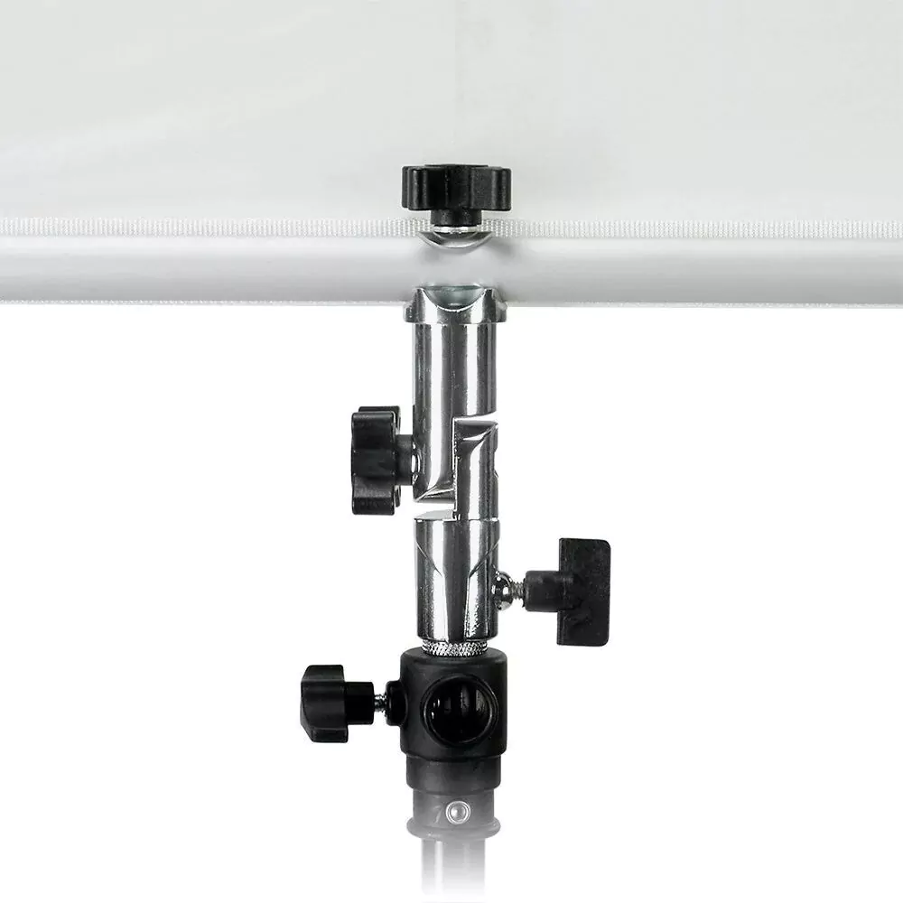 Mit der mitgelieferten Stoffbahn lässt sich das Sonnengitter ganz einfach in einen silbernen oder weißen Reflektor verwandeln. Verwenden Sie es in der Hand oder klemmen Sie es an einen Ständer. Hängen Sie es über Ihrer Szene auf, um das perfekte weiche Licht für Produkt- und Studioaufnahmen zu erhalten.