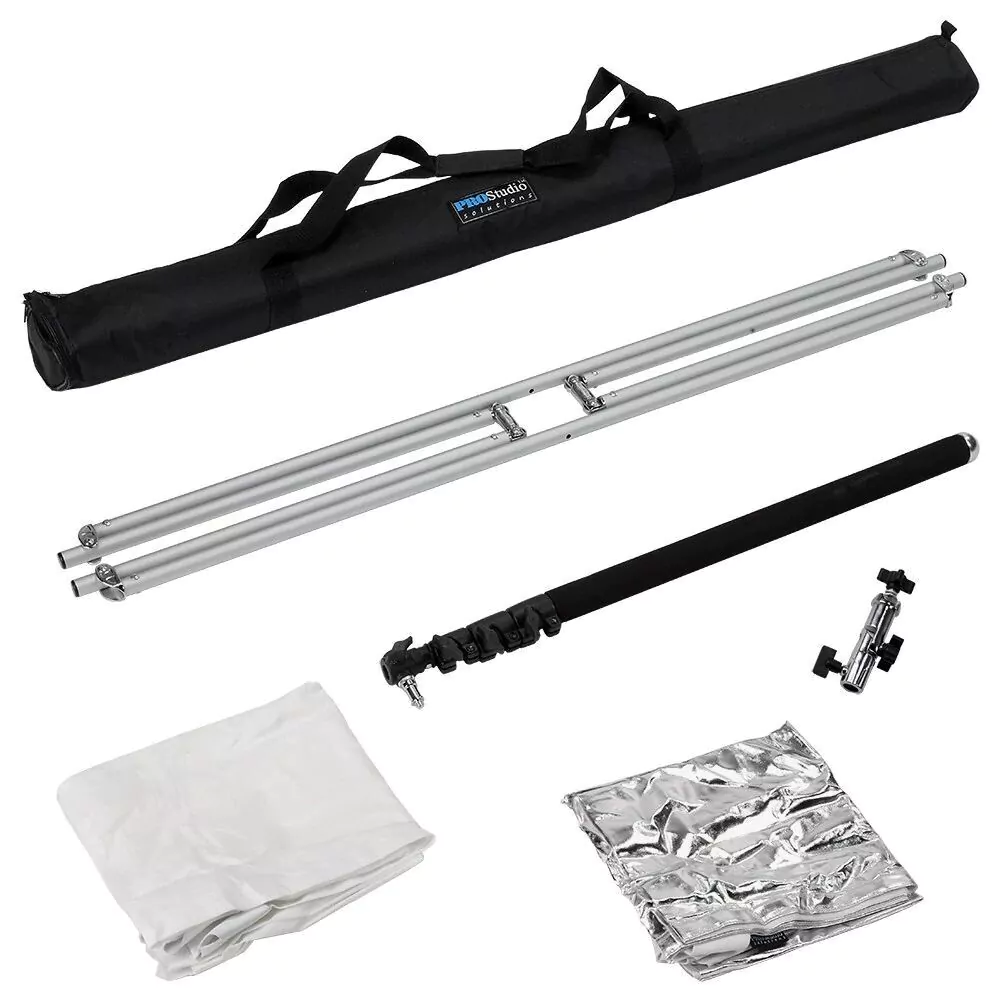 Pro Studio Solutions Boom Sun Scrim – zusammenklappbares Rahmendiffusions- und Silber/Weiß-Reflektor-Set mit Galgengriff und Tragetasche
