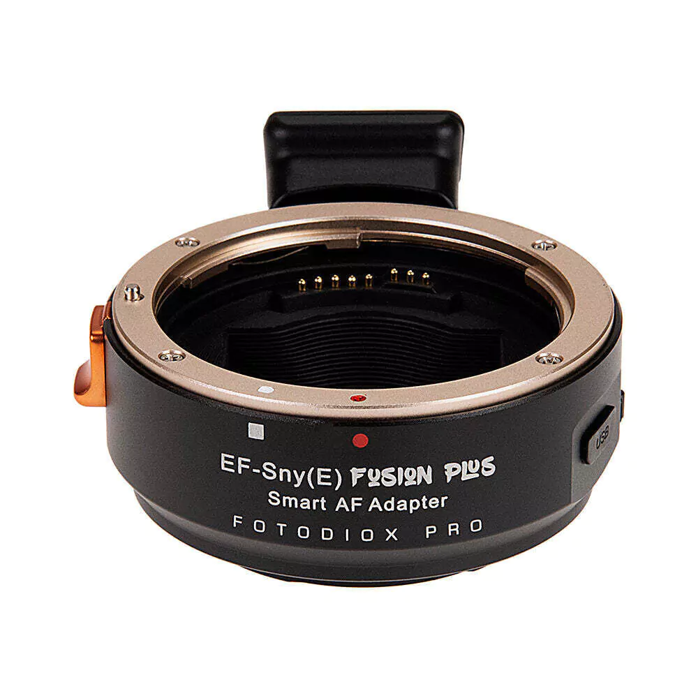 Fotodiox Pro Fusion Plus Objektivadapter, verbesserter Smart AF-Adapter mit Canon EOS EF D/SLR-Objektiven an spiegellosen Sony Alpha E-Mount-Kameras mit vollautomatisierten Funktionen (über USB aktualisierbare Firmware)