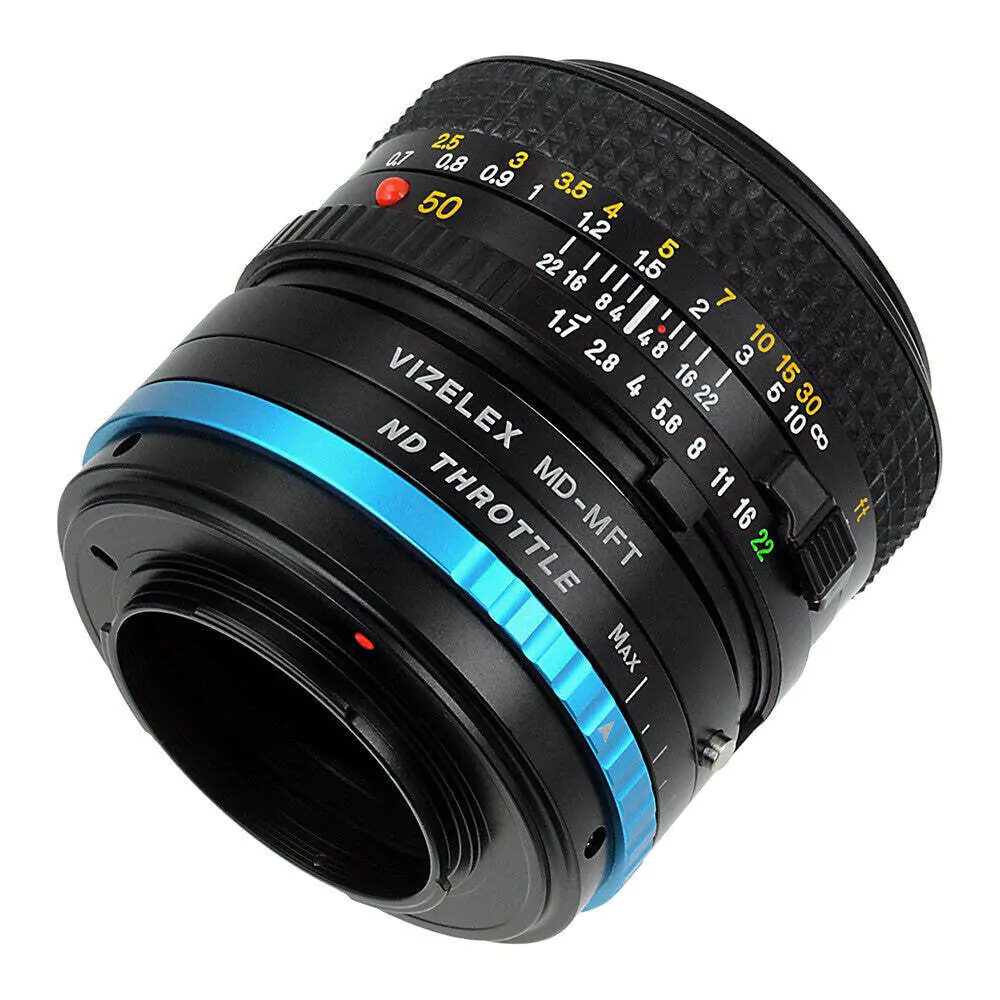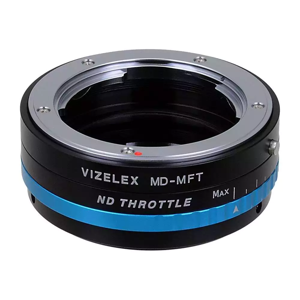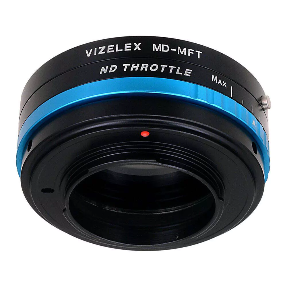 Fotodiox Vizelex ND Throttle Objektivadapter – Minolta Rokkor (SR/MD/MC) SLR-Objektiv an spiegelloses Kameragehäuse mit Micro Four Thirds (MFT, M4/3)-Anschluss mit integriertem variablem ND-Filter (2 bis 8 Blendenstufen)