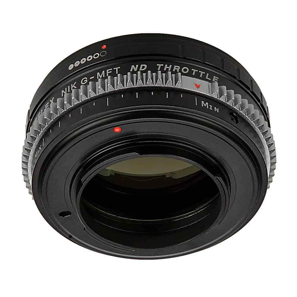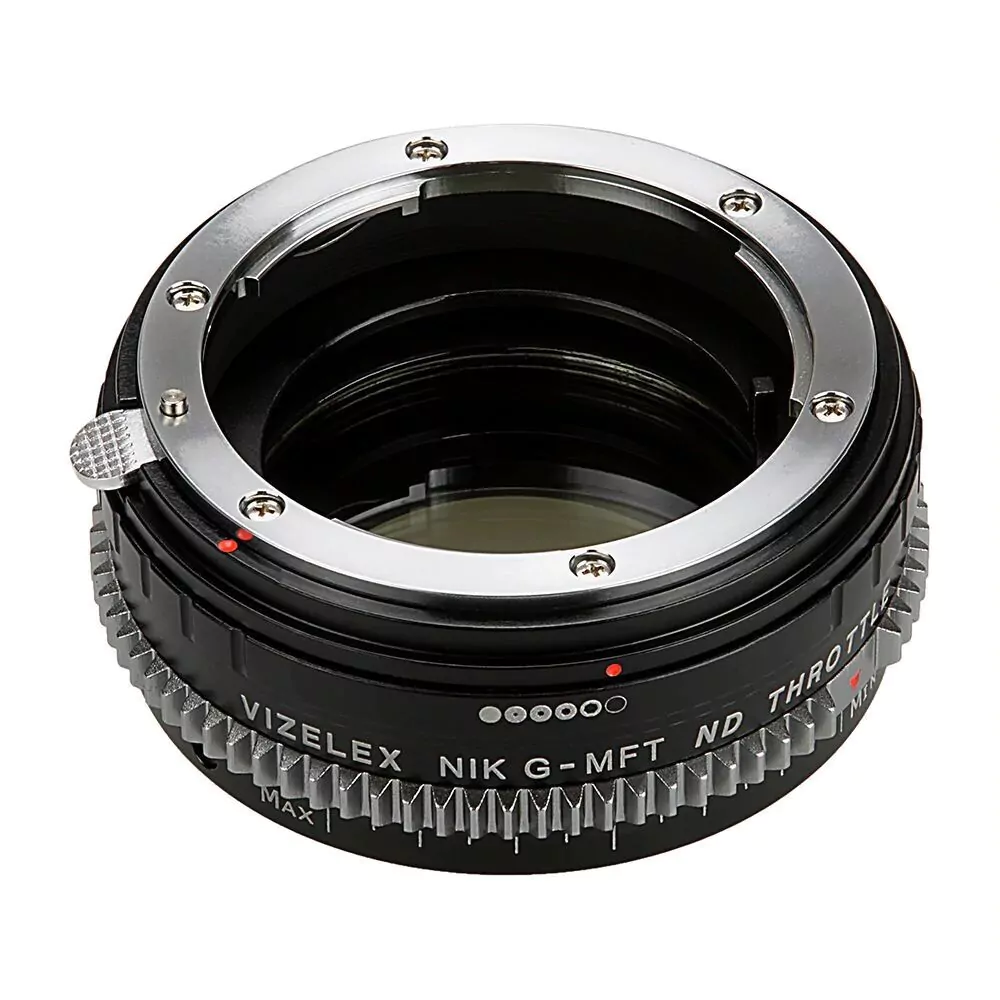 Fotodiox Vizelex Cine ND Throttle Objektivadapter – Nikon Nikkor F-Mount G-Type D/SLR-Objektiv an spiegelloses Kameragehäuse mit Micro Four Thirds (MFT, M4/3)-Mount mit integriertem variablem ND-Filter (2 bis 8 Blendenstufen)