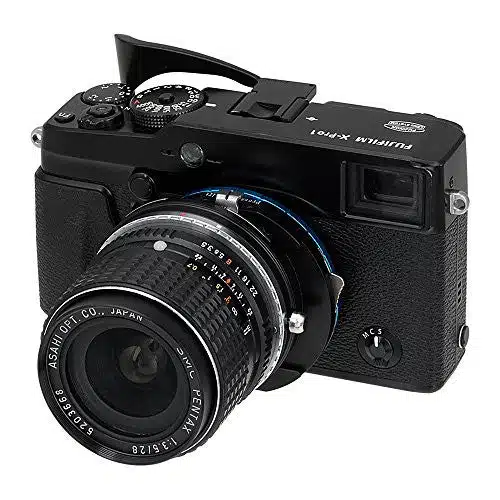 - Montiert Pentax K-Bajonett (PK) SLR-Objektive an spiegellosen Kameras der Fujifilm X-Serie; Fokussierung auf Unendlich und darüber hinaus möglich.